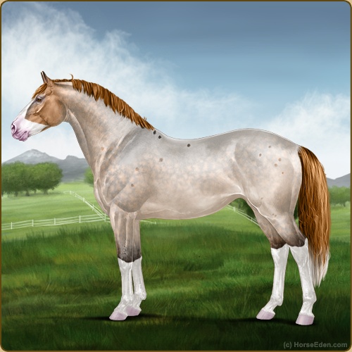 Color: Red Roan Dun Splash White