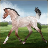 Name: MVDun X Itach 197Age: 5 Mare Color: Silver Mahogany Bay Roan Dun Splash White Varnish Appaloosa Breed: Irish Sport Horse Foal Rating: E/E/E |  |