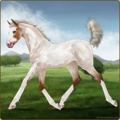 Name: {ΑⱯ} Lucky PearlAge: 8 Mare Color: Perlino Roan Breed: Irish Sport Horse Foal Rating: E/E/E Bravery Rating: Sub-Par |  |