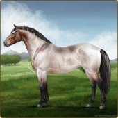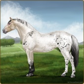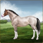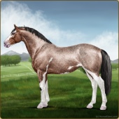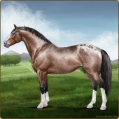 Name: (PEE) Birthday BrownAge: 6 Stallion Color: Buckskin Roan Leopard Appaloosa Breed: Irish Sport Horse Foal Rating: P/E/E |  |