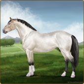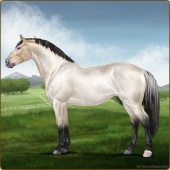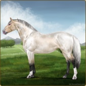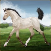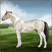 Name: (PEE) Birthday BathAge: 6 Stallion Color: Silver Buckskin Roan Tobiano Breed: Irish Sport Horse Foal Rating: P/E/E |  |