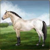 Name: EWWBi X FlyAw 196Age: 3 Stallion Color: Buckskin Roan Splash White Breed: Irish Sport Horse Foal Rating: P/E/E |  |