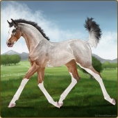 Name: (EEE) Birthday LexAge: 5 Stallion Color: Light Bay Roan Splash White Sabino Appaloosa Breed: Irish Sport Horse Foal Rating: E/E/E |  |
