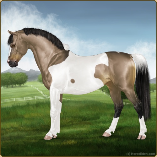 Color: Brown Dunskin Tobiano Rabicano