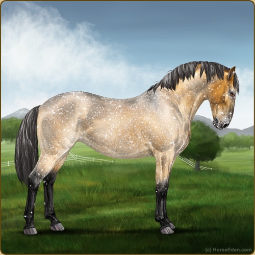 Color: Golden Bay Dun Varnish Snowflake Appaloosa