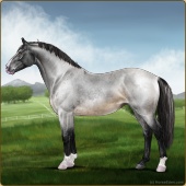 Name: AmunR X Valor 195Age: 6 Mare Color: Smokey Blue Roan Tobiano Sabino Breed: Irish Sport Horse Foal Rating: E/E/E |  |