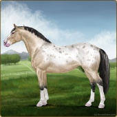 Name: Pure Ghost {EEE}Age: 8 Gelding Color: Buckskin Roan Sabino Blanket Appaloosa Breed: Irish Sport Horse Foal Rating: E/E/E |  |