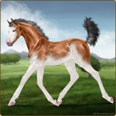 Name: 43443119EEEAge: 1 Gelding Color: Copper Bay Tobiano Sabino Breed: Anglo Arabian Foal Rating: E/E/E |  |
