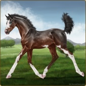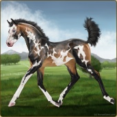 Name: TNC SeraAge: 5 Mare Color: Blood Bay Tobiano Breed: Appendix Quarter Horse Foal Rating: P/E/P Bravery Rating: Sub-Par |  |