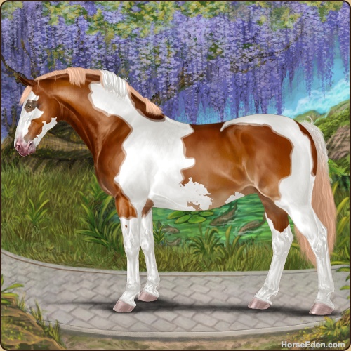 Color: Flaxen Chestnut Tobiano Sabino Frame