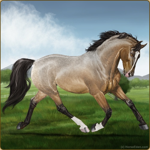 Color: Mahogany Bay Roan DunHorse Nbr: 41175284Breed: WarmbloodSex: MareBirthdate: June 1, 2025Age: 5Birth Year: 191Height: 16.1 Hands