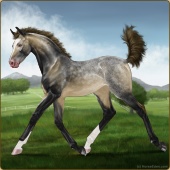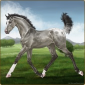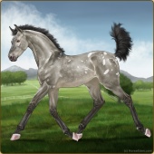 Name: 🌈 Violet WWWAge: 3 Stallion Color: Grullo Varnish Blanket Appaloosa Breed: Knabstrupper Foal Rating: W/W/W |  |