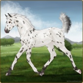 Name: Star of the Snow WWW ~FEAge: 5 Stallion Color: Grullo Leopard Appaloosa Breed: Knabstrupper Foal Rating: W/W/W Bravery Rating: Sub-Par |  |