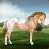 Name: 43457651Age: 2 Mare Color: Palomino Pearl Varnish Snowflake Appaloosa Breed: Knabstrupper Foal Rating: P/E/E |  |
