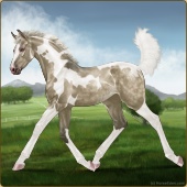 Name: Tarot X WChor 197Age: 2 Mare Color: Smokey Creme Tobiano Splash White Varnish Leopard Appaloosa Breed: Sport Pony Foal Rating: W/Sub/Sub |  |