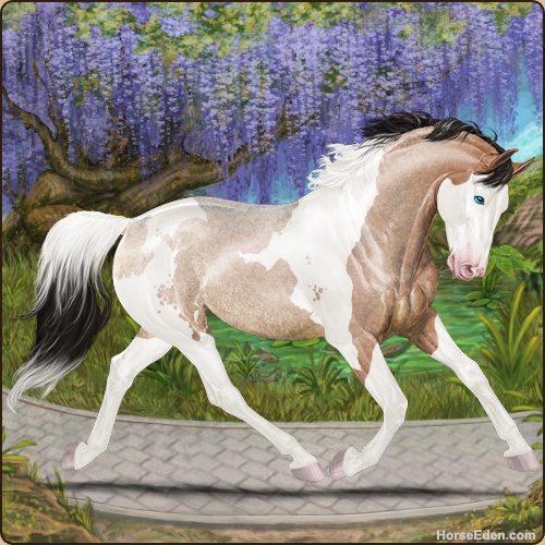 Color: Light Bay Roan Dun Tobiano Splash White Rabicano