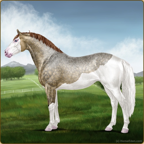 Color: Dark Red Roan Dun Splash White
