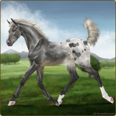 Name: Hypno's blizzard ezAge: 2 Stallion Color: Silver Mahogany Bay Roan Dun Leopard Appaloosa Breed: Irish Sport Horse Foal Rating: E/P/S |  |