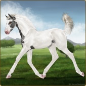 Name: Hypno X 4057 196Age: 3 Mare Color: Silver Grullo Splash White Breed: Sport Horse Foal Rating: E/E/P Bravery Rating: Sub-Par |  |