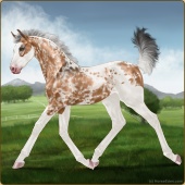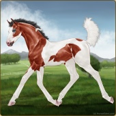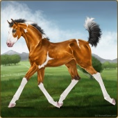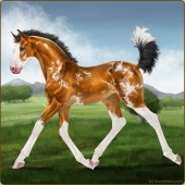 Name: WindW X Accid 195Age: 3 Mare Color: Golden Bay Splash White Breed: Warmblood Foal Rating: P/E/P |  |