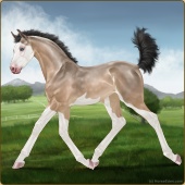 Name: Soul Piano PPPAge: 3 Gelding Color: Buckskin Splash White Breed: Warmblood Foal Rating: P/P/P |  |