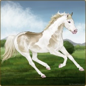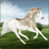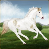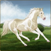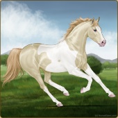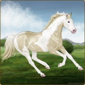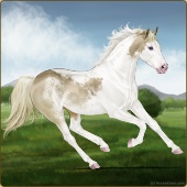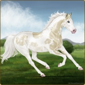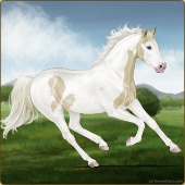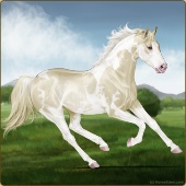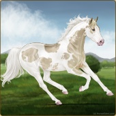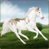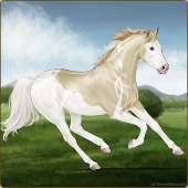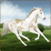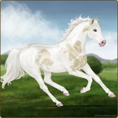 Name: foal 32541625Age: 9 Mare Color: Dunalino Pearl Tobiano Splash White Sabino Rabicano Breed: Thoroughbred |  |
