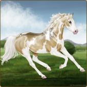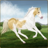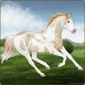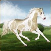 Name: foal 62794986Age: 7 Stallion Color: Dunalino Pearl Tobiano Splash White Sabino Breed: Thoroughbred |  |