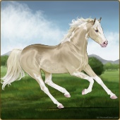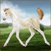 Name: foal 33822153Age: 9 Mare Color: Palomino Pearl Tobiano Splash White Sabino Rabicano Breed: Thoroughbred |  |