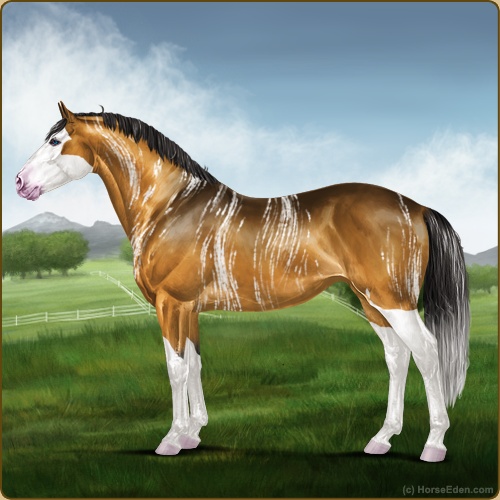 Color: Golden Bay Dun Splash White Sabino Appaloosa Brindle
