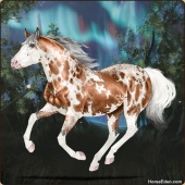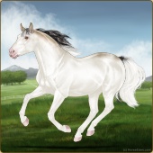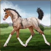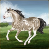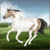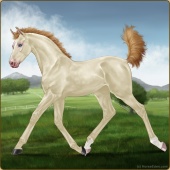 Name: Vihaa X Xerxe 198Age: 3 Mare Color: Perlino Sabino Breed: Appendix Quarter Horse Foal Rating: E/E/E |  |