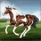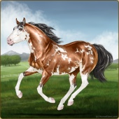 Name: High In LifeAge: 5 Mare Color: Mahogany Bay Tobiano Sabino Breed: Appendix Quarter Horse Foal Rating: E/E/E |  |