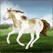 Name: 58757575Age: 5 Gelding Color: Perlino Sabino Breed: Appendix Quarter Horse Foal Rating: E/E/E |  |