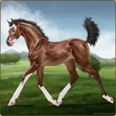 Name: Vihaa X WildS 200Age: 1 Filly Color: Mahogany Bay Breed: Sport Horse Foal Rating: E/E/E |  |