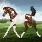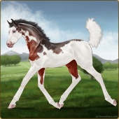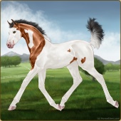 Name: ♥ Zomb's ApocalypseAge: 5 Mare Color: Blood Bay Tobiano Splash White Sabino Frame Breed: Appendix Quarter Horse Foal Rating: E/W/W |  |