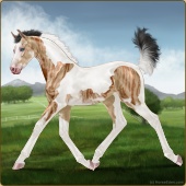 Name: CH Trophy GalAge: 2 Mare Color: Copper Bay Tobiano Sabino Breed: Appendix Quarter Horse Foal Rating: E/E/E |  |