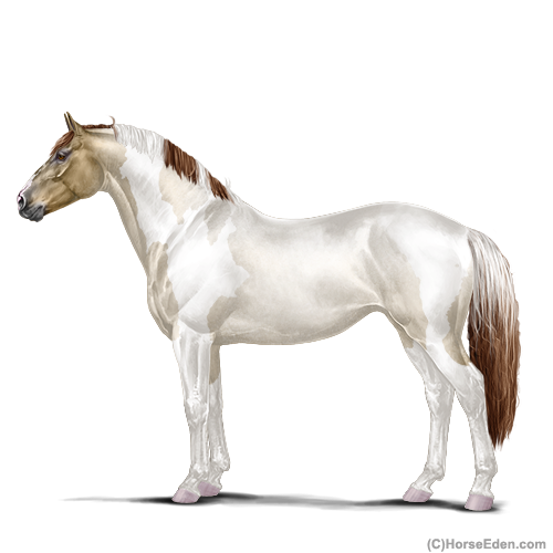 Color: Dark Red Roan Dun Tobiano Rabicano