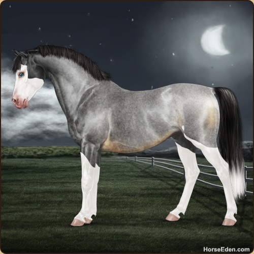 Color: Blue Roan Splash White