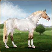 Name: Malina 195Age: 7 Gelding Color: Palomino Roan Splash White Breed: Sport Horse Foal Rating: Sub/S/W |  |