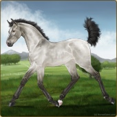 Name: Red Vines (SubAW)Age: 3 Gelding Color: Grullo Splash White Breed: Sport Horse Foal Rating: Sub/A/W |  |