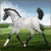 Name: Phelina 198Age: 4 Mare Color: Grey Tobiano Splash White Breed: Sport Horse Foal Rating: Sub/S/W |  |