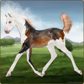 Name: TGFCh X TGFSm 201Age: 1 Filly Color: Light Bay Roan Splash White Breed: Sport Horse Foal Rating: Sub/S/W |  |
