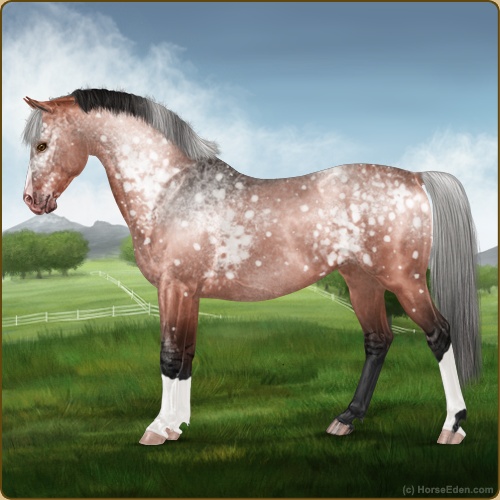 Color: Blood Bay Dun Varnish Snowflake Appaloosa