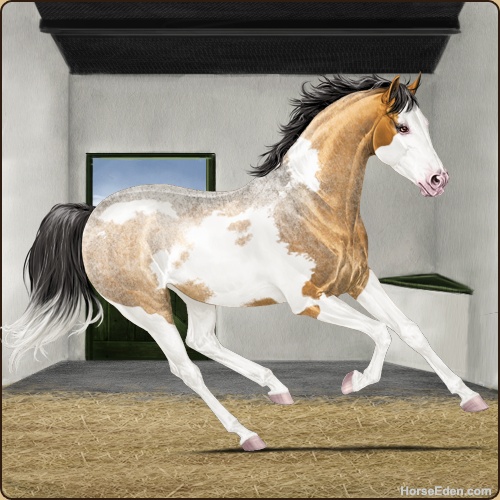 Color: Golden Bay Roan Dun Splash White Frame