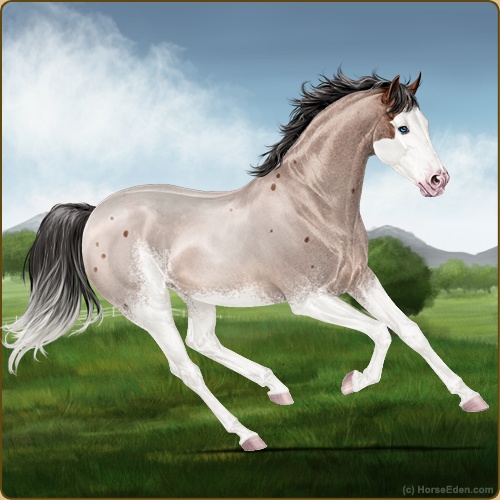 Color: Mahogany Bay Roan Splash White Sabino