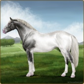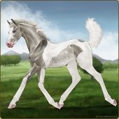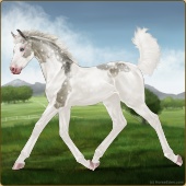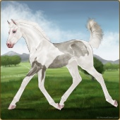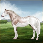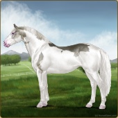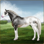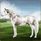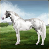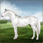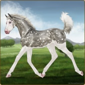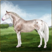 Name: Bougie Sailing | PPP 1/1Age: 5 Mare Color: Silver Roan Grullo Tobiano Splash White Rabicano Varnish Snowflake Appaloosa Breed: Irish Sport Horse Foal Rating: P/P/P |  |