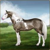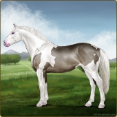 Name: Bougi X Zealo 194Age: 5 Mare Color: Silver Black Tobiano Splash White Rabicano Varnish Appaloosa Breed: Irish Sport Horse Foal Rating: P/P/P |  |