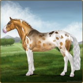 Name: RH Boujee Boy 1/3Age: 4 Stallion Color: Silver Golden Bay Dun Tobiano Splash White Rabicano Blanket Appaloosa Breed: Irish Sport Horse Foal Rating: S/P/P |  |