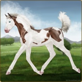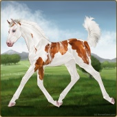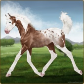 Name: Victory Ridge| PPP 1/1Age: 2 Mare Color: Silver Blood Bay Roan Tobiano Splash White Sabino Rabicano Varnish Appaloosa Breed: Irish Sport Horse Foal Rating: P/P/P |  |