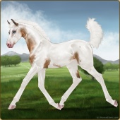 Name: Bougi X Baked 197Age: 2 Mare Color: Silver Golden Bay Dun Tobiano Splash White Rabicano Frost Appaloosa Breed: Irish Sport Horse Foal Rating: P/P/P |  |