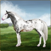 Name: ຟ Blue MoonAge: 4 Mare Color: Blue Roan Tobiano Splash White Varnish Frost Appaloosa Breed: Irish Sport Horse Foal Rating: P/P/S |  |